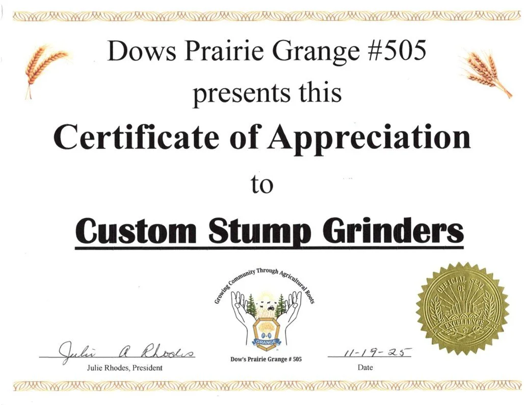 “We would refer Custom Stump Grinders to anyone who is interested in a hardworking, honest couple who has great communication skills and just a pleasure to work with. We have had the opportunity to hire Russell and Michelle many times over the last 2 years and they have ground out many stumps on our property that has helped us along the way to complete our projects and accomplish our vision for our home. Not only do we appreciate our professional relationship, but our friendship that we have made as well. We have no doubt that we will have another project in the future and Custom Stump Grinders is who we will call. Thank you Russell and Michelle for all of your hard work, we so appreciate it!!!! ”